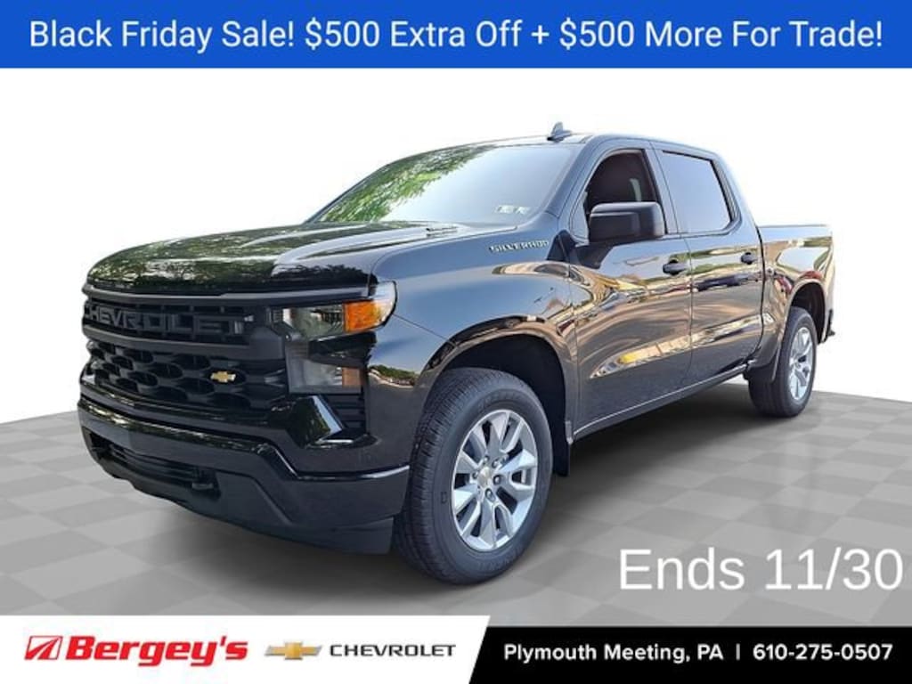 Introducing the 2025 Chevrolet Silverado 1500 2WD Crew Cab Short Bed Custom, a perfect blend of power, style, and functionality. Finished in an eye-catching GBA black exterior, this truck commands attention on the road. Inside, the jet black H0U interior offers a sleek and modern atmosphere, designed for both comfort and durability. At the heart of this Silverado is the robust Turbomax 2.7L I-4 gasoline direct injection engine, featuring advanced DOHC and variable valve control technology. With an impressive output of 310 horsepower and cylinder deactivation for improved efficiency, this vehicle delivers seamless performance whether you're on the highway or tackling tough terrain. The 147 crew cab configuration provides spacious seating for up to five passengers, ensuring everyone travels in comfort. Plus, the short bed is perfect for hauling your gear without sacrificing maneuverability. With its striking design and advanced engineering, the 2025 Chevrolet Silverado 1500 2WD Crew Cab Short Bed Custom is built to meet the demands of work and play alike. Elevate your driving experience-explore the Silverado today. Price includes: $1000 - GM Bonus Cash. Exp. 02/02/2026 $3000 - Chevrolet Consumer Cash Program. Exp. 02/02/2026