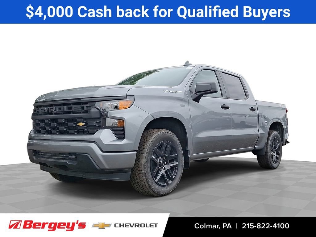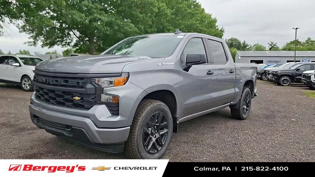 Sterling Gray Metallic 2025 Chevrolet Silverado 1500 Custom 4WD 8-Speed Automatic 2.7L I4 Turbocharged DOHC 16V LEV3-SULEV30 310hp Price includes: $1000 - GM Bonus Cash. Exp. 02/02/2026 $3000 - Chevrolet Consumer Cash Program. Exp. 02/02/2026
