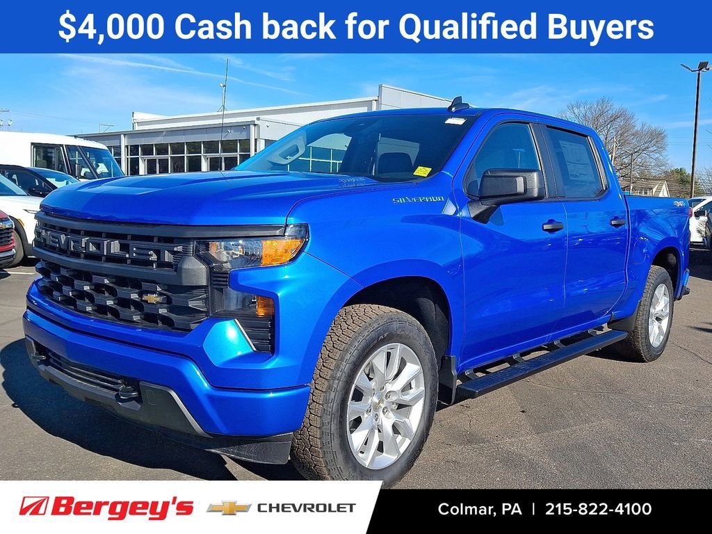 Riptide Blue Metallic 2026 Chevrolet Silverado 1500 Custom 4WD 8-Speed Automatic 2.7L I4 Turbocharged DOHC 16V LEV3-SULEV30 310hp Price includes: $1000 - GM Bonus Cash. Exp. 02/02/2026 $3000 - Chevrolet Consumer Cash Program. Exp. 02/02/2026