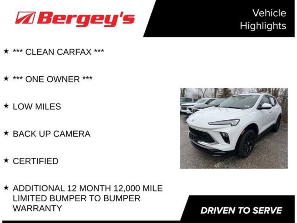 Recent Arrival! *** CLEAN CARFAX ***, *** ONE OWNER ***, LOW MILES, BACK UP CAMERA, CERTIFIED, ADDITIONAL 12 MONTH 12,000 MILE LIMITED BUMPER TO BUMPER WARRANTY. Certified. Certification Program Details: *6-Month/6,000-Mile Bumper-to-Bumper Limited Warranty*, whichever comes first, in addition to any remaining original factory Bumper-to-Bumper warranty. See participating dealer and warranty booklet for limited warranty eligibility and coverage details, including limitations and exclusions. *Except for non-GM vehicles in the State of California, where coverage will be provided by a vehicle service contract. Odometer is 36944 miles below market average!29/31 City/Highway MPG2024 Summit White Buick Encore GX FWD ECOTEC 1.3L Turbo CVT