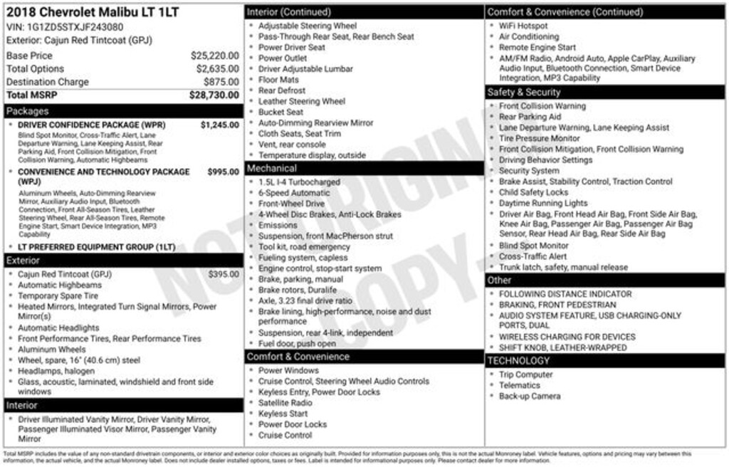 Dark Atmosphere/Medium Ash Gray Cloth. Cajun Red Tintcoat 2018 Chevrolet Malibu LT FWD 6-Speed Automatic 1.5L DOHC