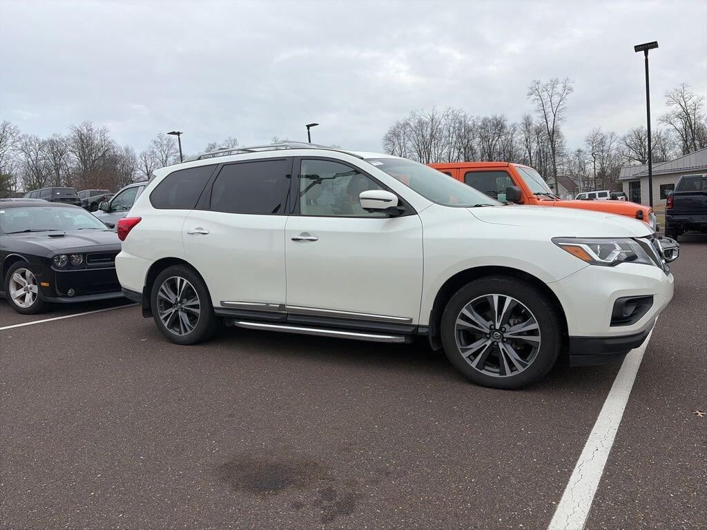Recent Arrival! Clean CARFAX. Pearl White Tricoat 2019 Nissan Pathfinder Platinum 4WD CVT with Xtronic V6