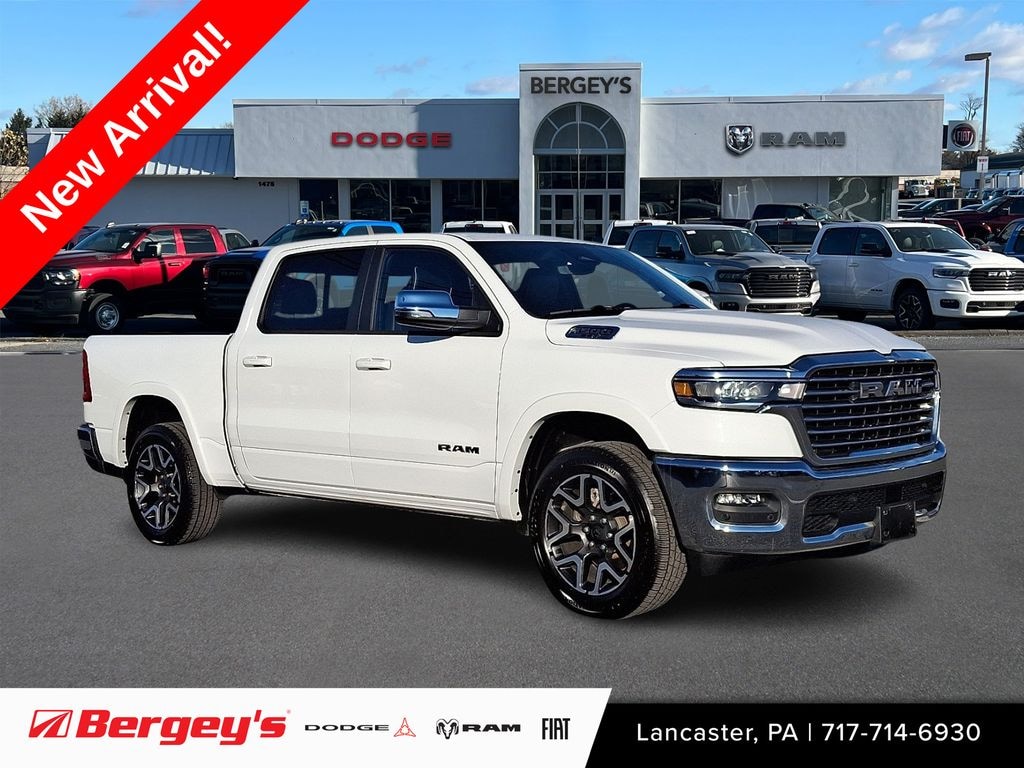 Certified. Bright White Clearcoat 4D Crew Cab CARFAX One-Owner. 2025 Ram 17/24 City/Highway MPG 1500 Laramie 4WD 8-Speed Automatic 3.0L I6 1-OWNER, CERTIFIED, CLEAN CARFAX, FRESH OIL CHANGE, NEW PA INSPECTION, PROFESSIONAL DETAIL, #1 Seat Foam Cushion, 3 Rear Seat Head Restraints, 4 Way Front Headrests, Bucket Seats, Center Console Parts Module, Driver Seat Memory, Front Seat Back Map Pockets, Full Length Upgraded Floor Console, Heated Front Seats, Heated front seats, Heated rear seats, Heated Second Row Seats, Heated Steering Wheel, Laramie Level 1 Equipment Group, Leather Trimmed Bucket Seats, Power 2-Way Driver Lumbar Adjust, Power 2-Way Passenger Lumbar Adjust, Power Adjust 8-Way Driver Seat, Power Adjust 8-Way Front Passenger Seat, Power driver seat, Quick Order Package 21H Laramie, Radio: Uconnect 5 Nav w/12.0" Display, Rain Sensitive Windshield Wipers, Rear 60/40 Folding Split Recline Seat, Remote keyless entry, Remote Tailgate Release, Steering wheel mounted audio controls, Ventilated Front Seats, Wheels: 20" x 9" Premium Paint/Polish.